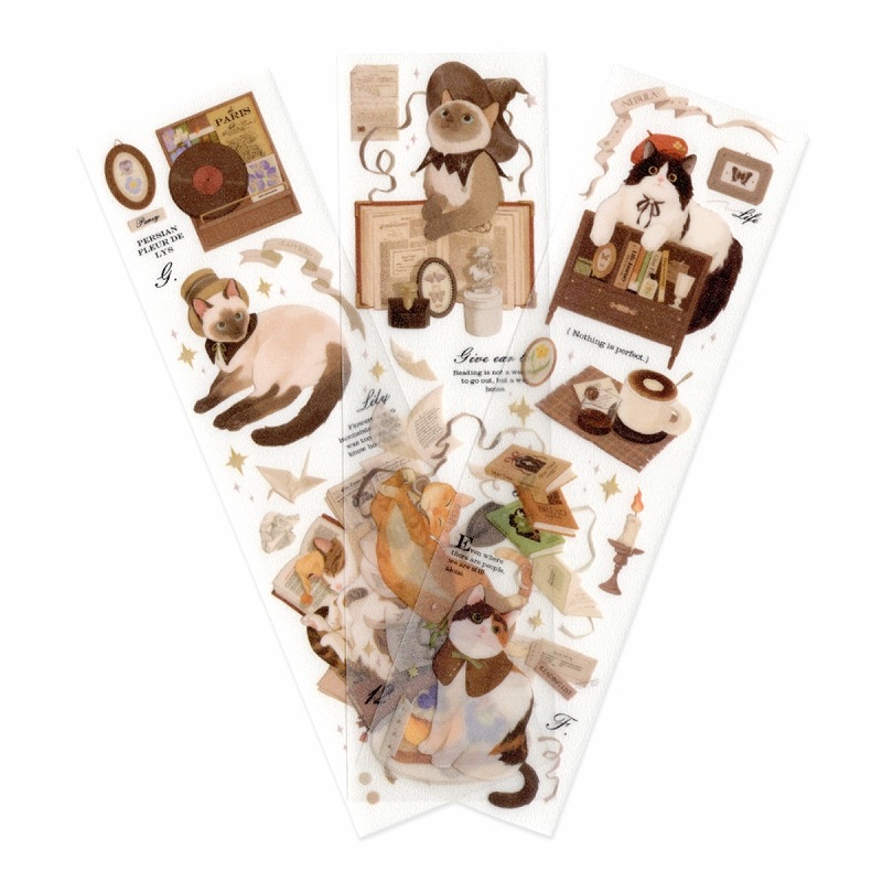 フレークシール (転写シール) シート スクラップ素材 猫カフェシリーズ (ケーキを食べよう) PVC素材