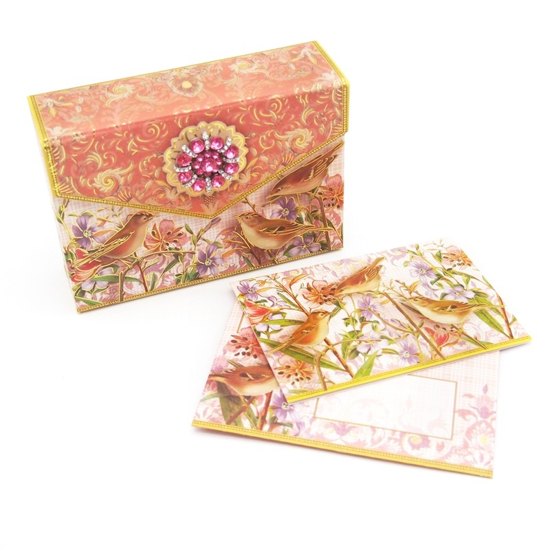 Punch Studio グリーティングカード 封筒セット 封筒型ボックス入り (ピンク×鳥)