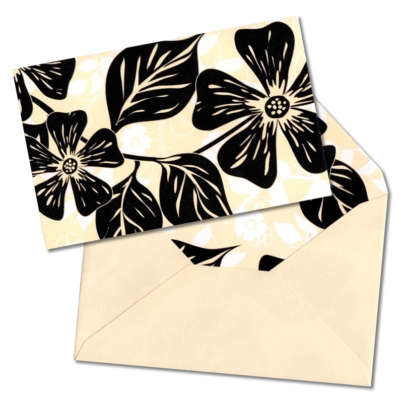 ロジャーラボード グリーティングカード 封筒セット エンボス加工(ブラック×イエロー×フラワー)