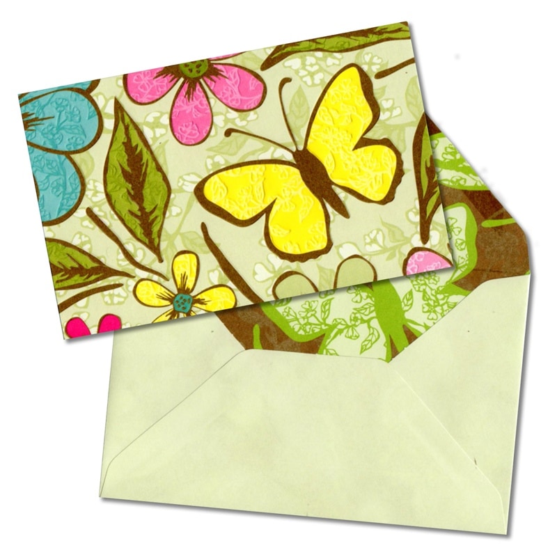 ロジャーラボード グリーティングカード 封筒セット エンボス加工(バタフライ×フラワー×グリーン)