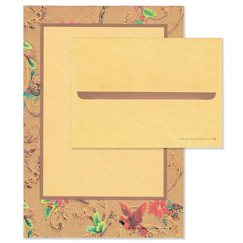 The Paper Company 【クリスマス】 レターセット 便箋6枚 封筒3枚 (金×深紅の鳥)