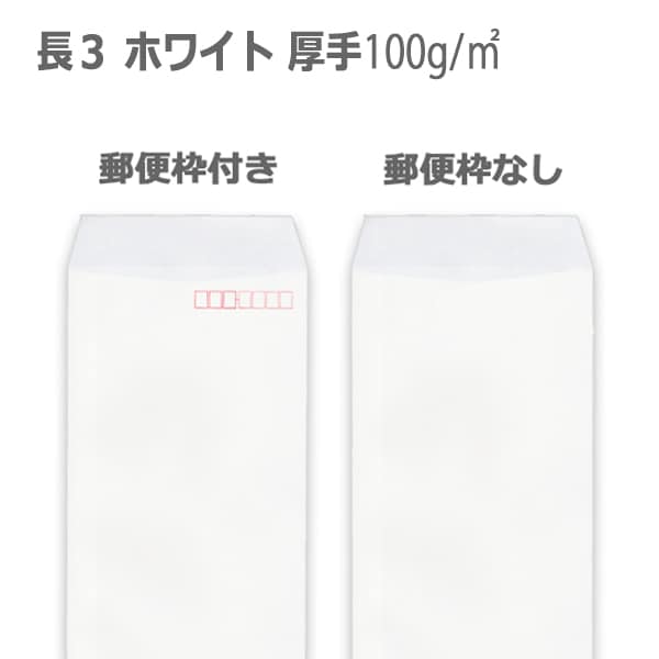 長3封筒・白ケント/白封筒 【100枚より】 長形3号 厚手の100gも低価格