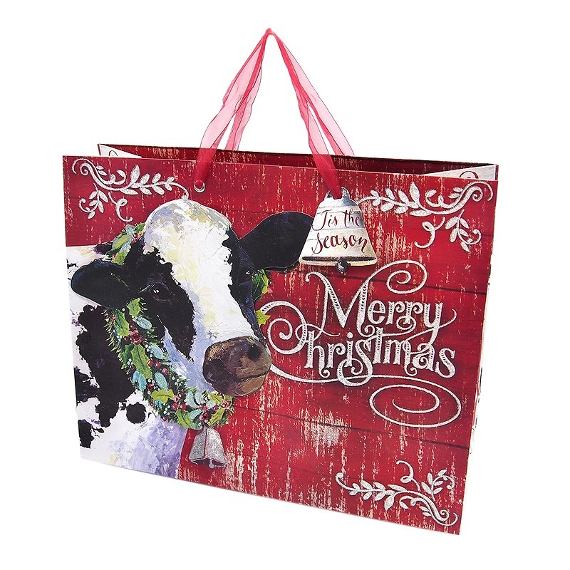 Punch Studio 【クリスマス】 ギフトバッグ | 紙袋 Lサイズ タグ付き (牛×Merry Christmas)