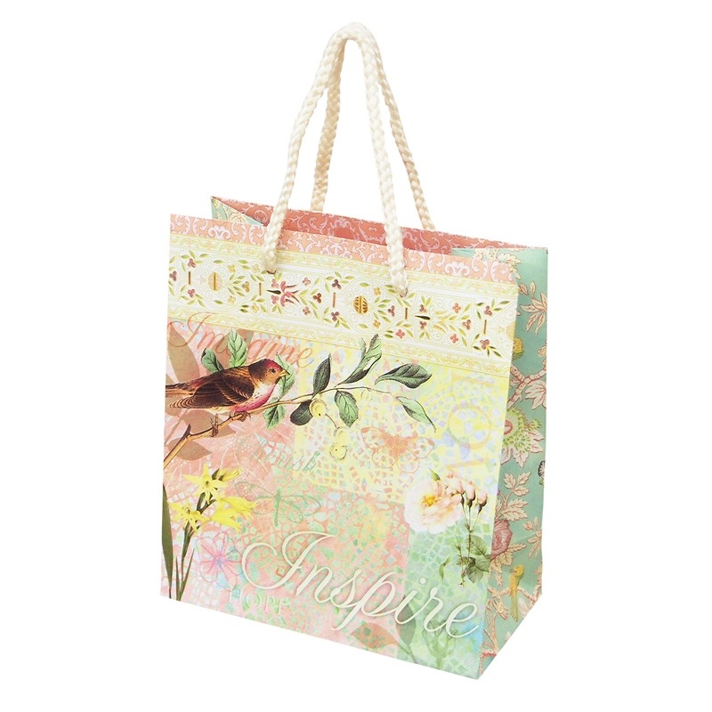 Punch Studio 紙袋 | ギフトバッグ Sサイズ (鳥×ピンク)