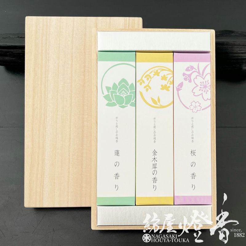 ご贈答/進物『日本の四季のうつろい【祈りと癒しのお線香・3種詰合せ-Assortment-】桐箱入[有煙]』悠々庵