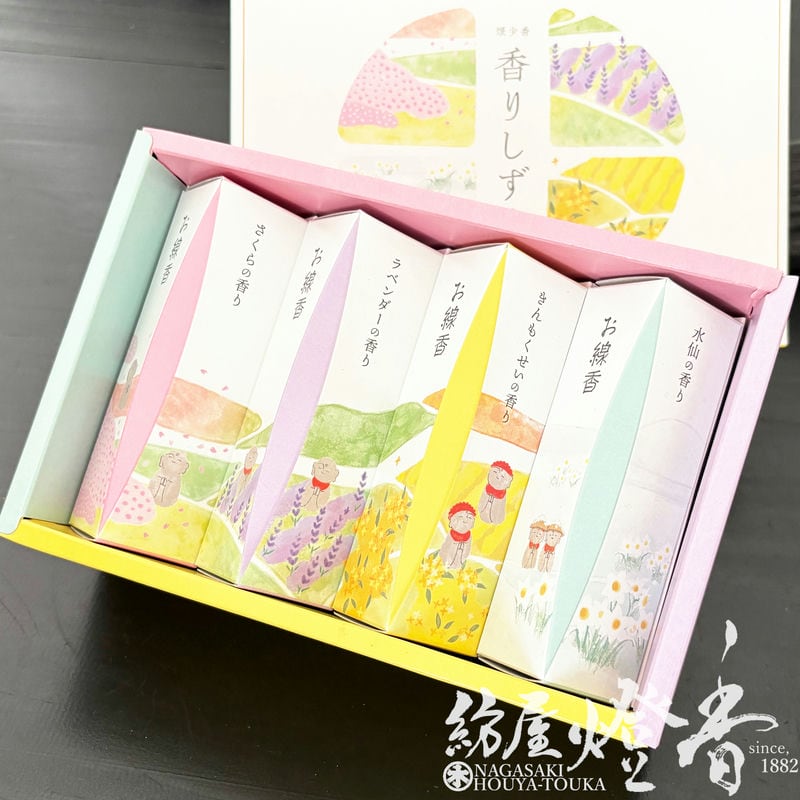 ご贈答/進物『四季折々のお花【煙少香・香りしずく~ミニ寸4種アソート~】紙箱入[少煙]』マルエス