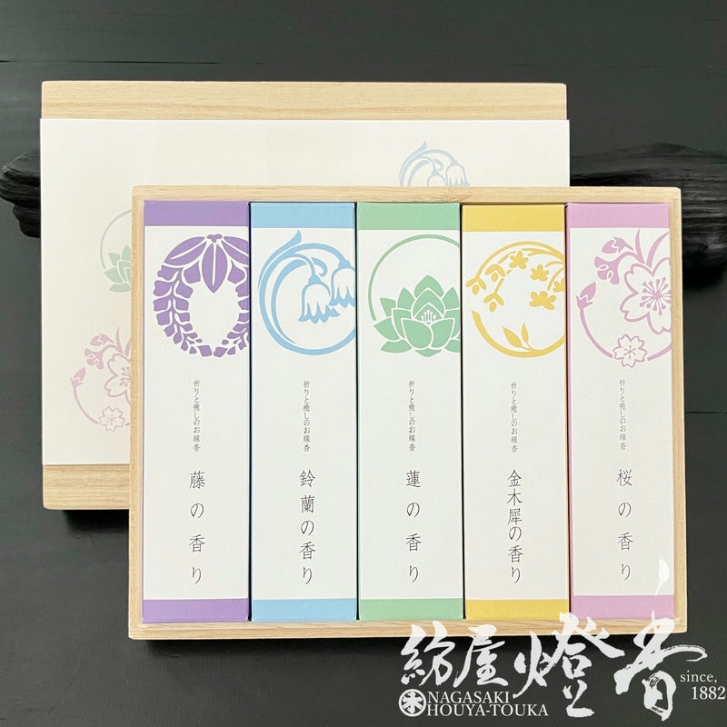 ご贈答/進物『王朝時代の艶麗・優雅なかおり【花琳(かりん)・五種詰合せ-KARIN-/5種5把】短寸桐箱入[有煙]』薫寿堂