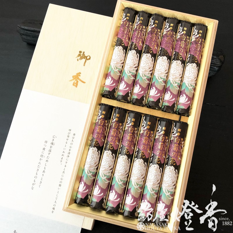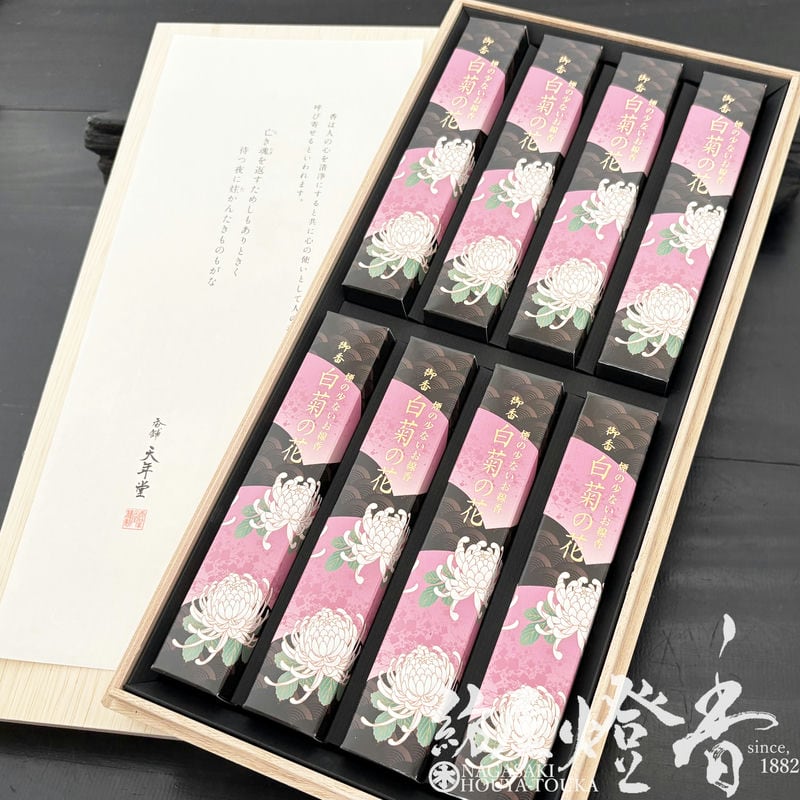 ご贈答/進物『邪気を払う優美な花【白菊の花-SHIRAGIKUnoHANA-】短寸8箱木箱入[少煙]』天年堂