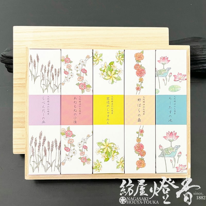 ご贈答/進物『日本の四季のうつろい【天然精油のお線香・5種詰合せ-Assortment-】桐箱入[有煙]』悠々庵