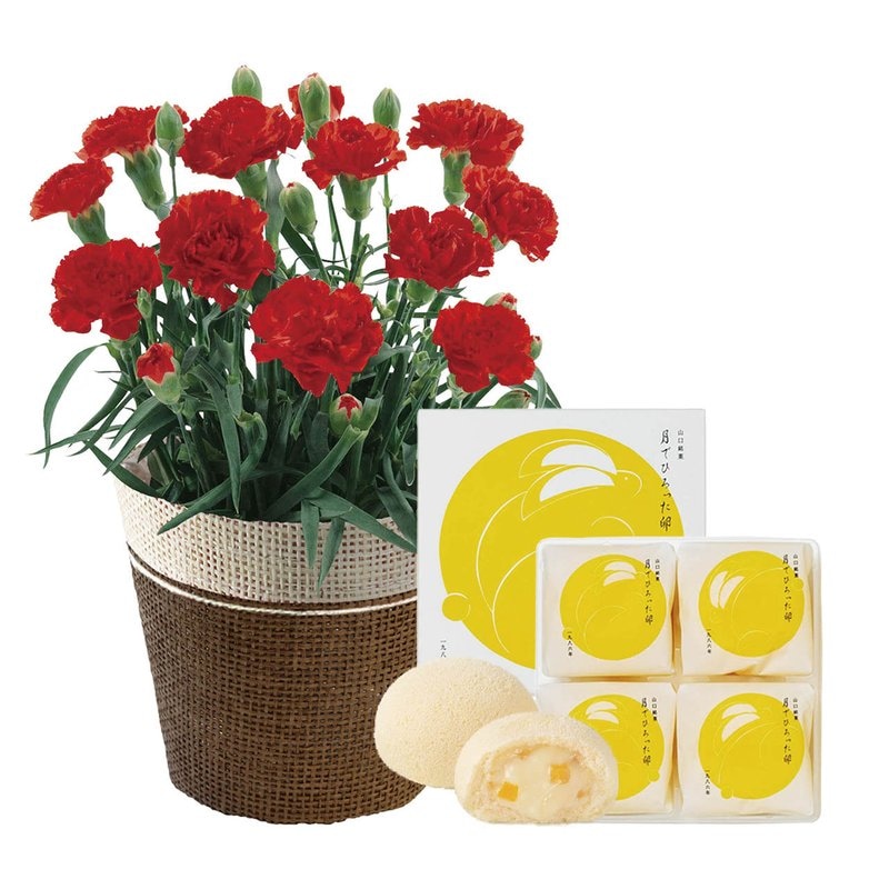 母の日 ミニカーネーションレッド4号&月でひろった卵セット