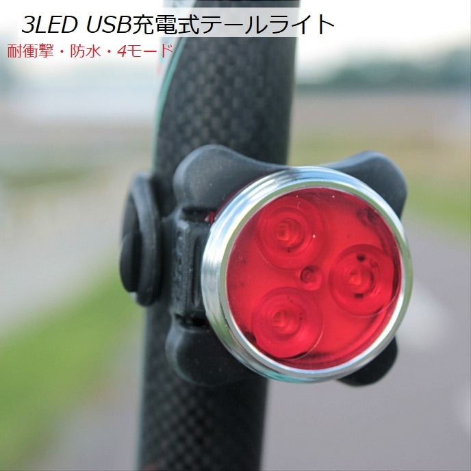 LED3灯 USB充電式テールライト シリコンストラップで取り付け簡単