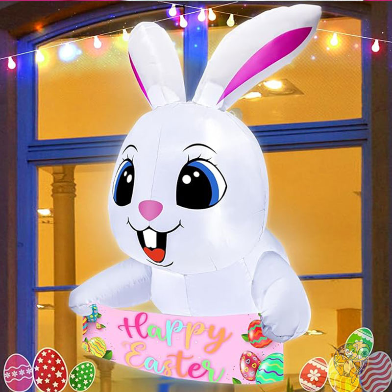 イースター インフレータブル バニー 4フィート 122cm 屋外装飾 うさぎ 窓から身を乗り出す デコレーション 内蔵LEDライ...