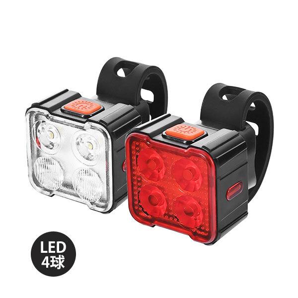 自転車用 LED 4灯 ヘッドライト テールライト 滑り止め USB 充電式 防水 照明モード 工具不要 点灯 夜道 軽量 取り付...