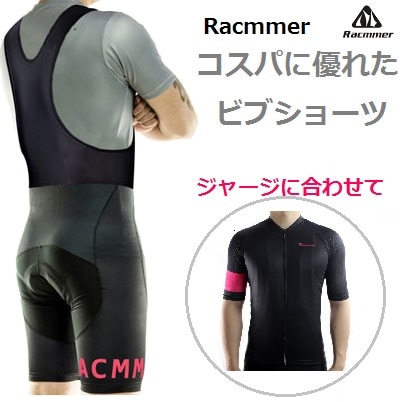 サイクルウエア Racmmerのコスパに優れるビブショーツ ジャージとおそろい ブラック/ハイビズピンクロゴ