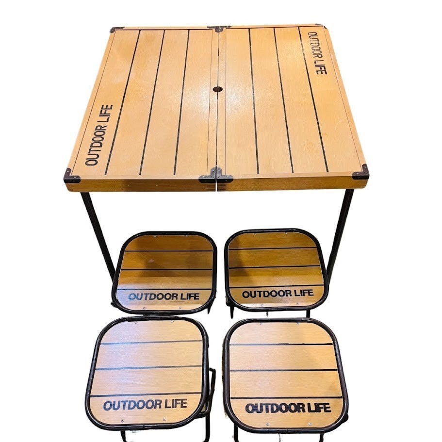 【中古】YUASAピクニックセットKD812 テーブル椅子5点セット 80センチ角 高40センチ