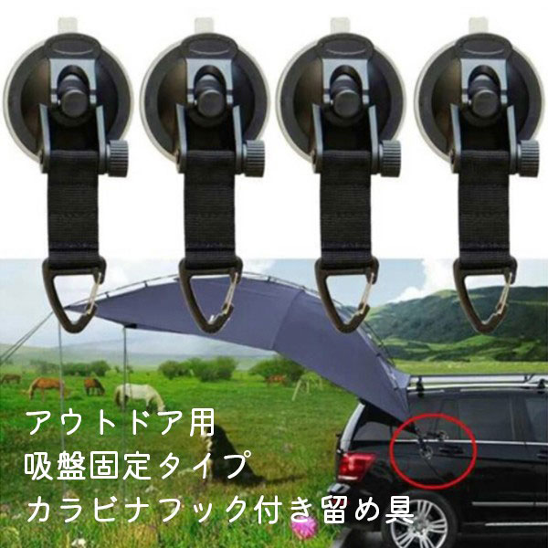 【即納】アウトドア用 多機能吸盤 カラビナフック付き 留め具 4個セット 吸盤固定タイプ テント 強力吸着 車 屋内 屋外 アウト...