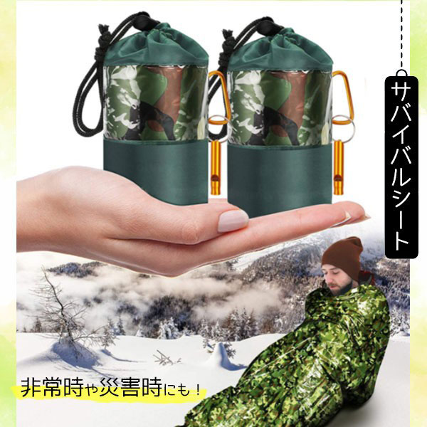【セール】即納 安い アウトドア用品 サバイバルシート 非常時用寝袋 カモフラージュ 寝袋 アウトドア 防災 断熱 防災関連グッズ...