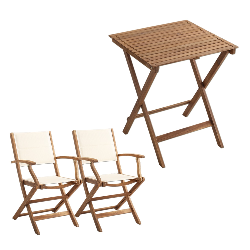 折りたたみガーデンテーブル・チェア肘付き(3点セット)人気素材のアカシア材を使用 | Yuel-ユエル- SH-01-YEL3-G...