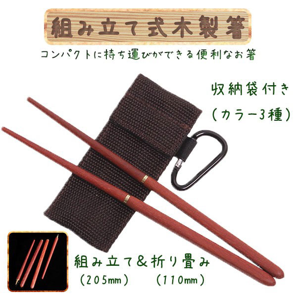 組み立て式 木製箸 カラビナ付き 軽い コンパクト 携帯 持ち運び 便利 収納袋付き アウトドア キャンプ 登山 バーベキュー ギ...