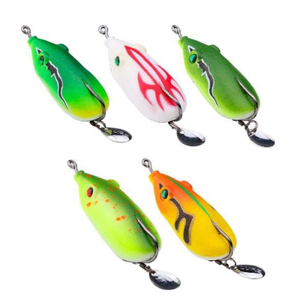 【セール】即納 安い 釣り用品 疑似餌 カエルルアー 蛙モチーフ 6cm 13g フロッグ型 5色セット 色鮮やか ソフト 鮭 バ...