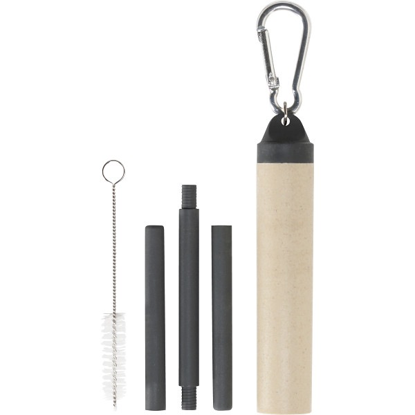 エコストロー バンブーファイバー配合素材 《繰り返し使える携帯ストロー》 マイストロー エコ カラビナ付き収納ケース 洗浄ブラシ ...