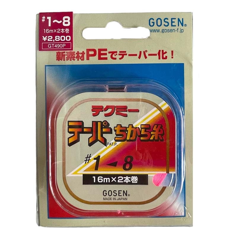 ゴーセン テクミー テーパーちから糸 GT490P 1-8号 蛍光ピンク (16m×2)【メール便可】