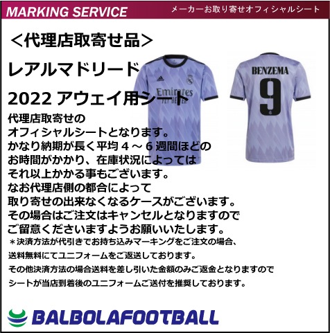 <オフィシャル>レアルマドリード22アウェイカップ戦用シート