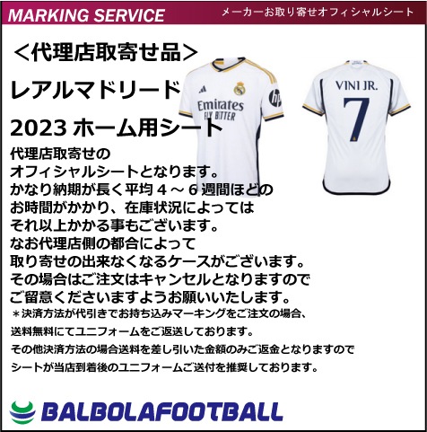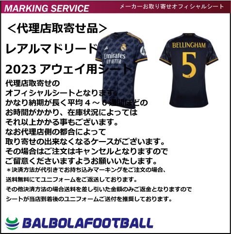 <オフィシャル>レアルマドリード23アウェイカップ戦用シート
