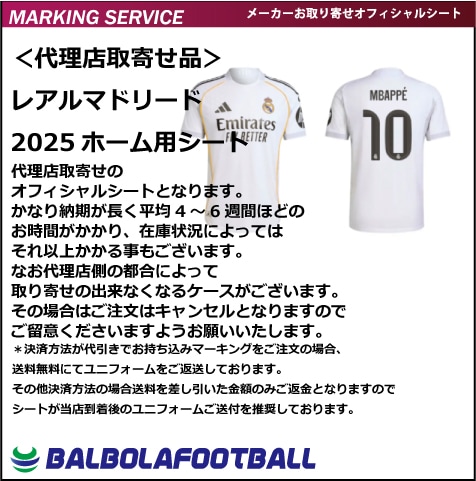 <オフィシャル>レアルマドリード25サードカップ戦用シート