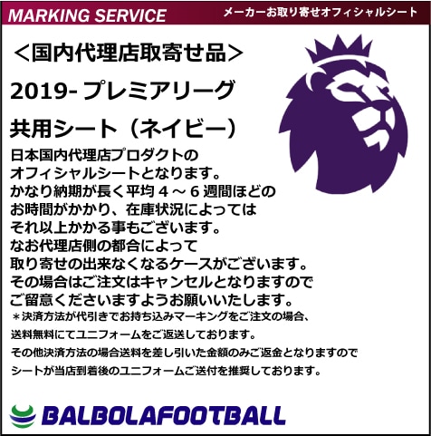 <オフィシャル>2019-2023プレミアリーグ共用シート(ネイビー・背番号無し・全選手対応可能)*お取り寄せ品