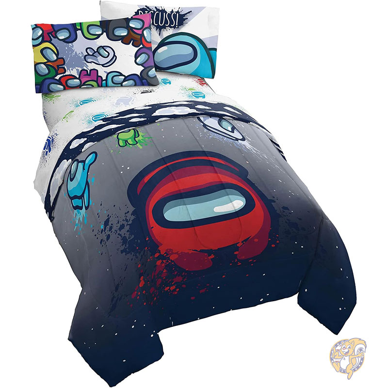 Among Us アモングアス ベットリネンセット ツインサイズ スペース スプラッター 4 ピース ツインサイズ ベッドセット ...