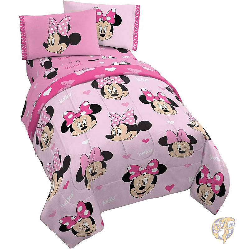 ディズニー ミニーマウス ハーツ&ラブ 5 ピース フルサイズ ベッドセット リバーシブル掛け布団とシーツセット付き 柔らかくて色...