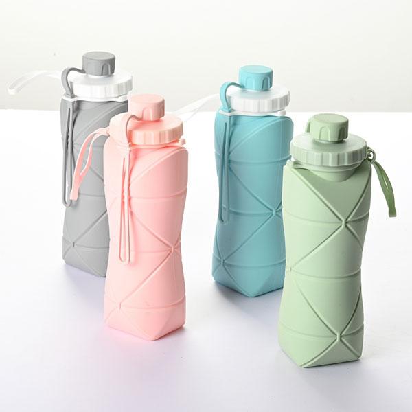 シリコン製 折り畳み式 ウォーターボトル 600ml 水筒 ゴム紐付き 登山 アウトドア スポーツ 清潔 取り外し可 シンプル 携...