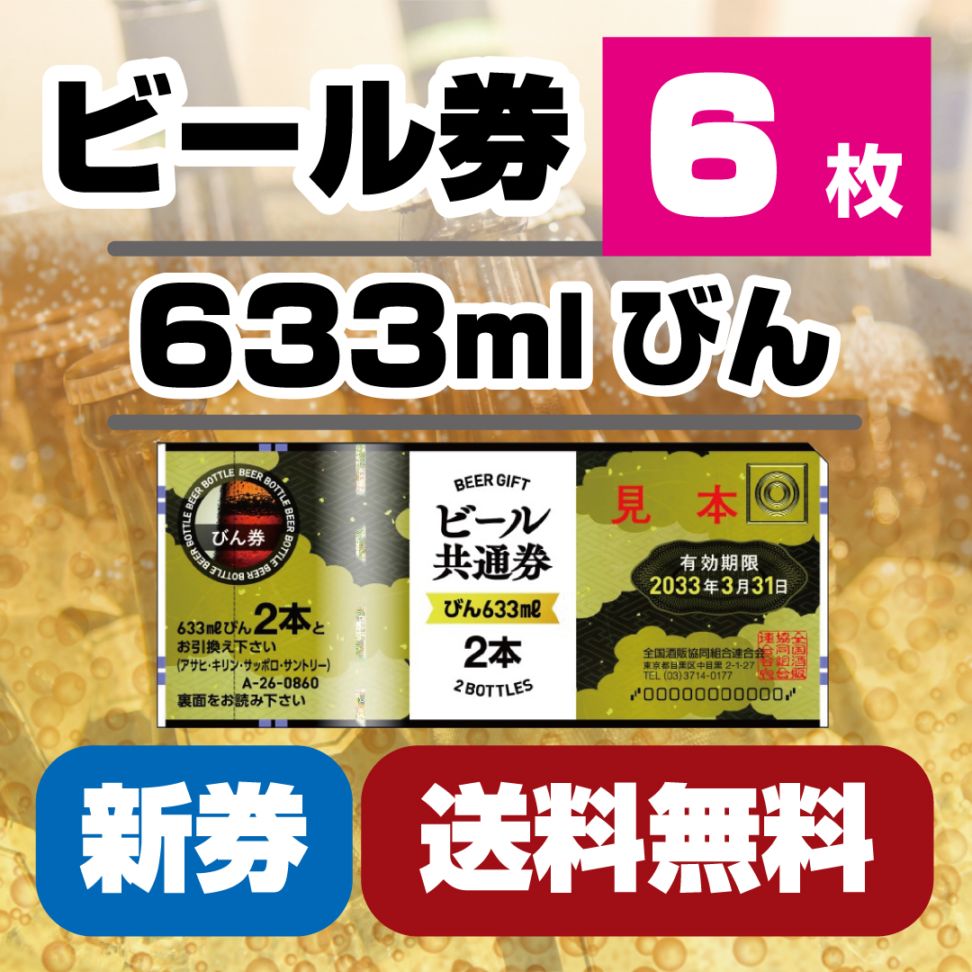 【送料無料】ビール券(633m 瓶ビール2本) 新券:6枚 [59201-06] 書留発送