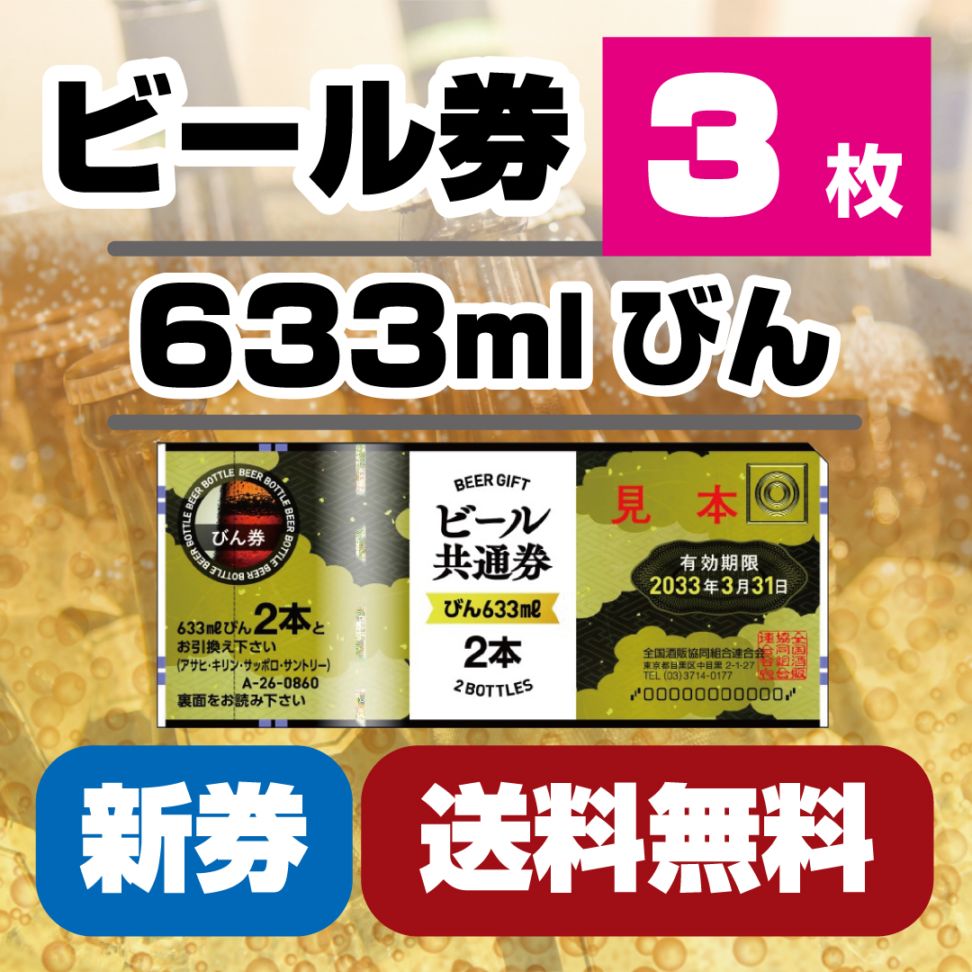 【送料無料】ビール券(633m 瓶ビール2本) 新券:3枚 [59201-03] 書留発送