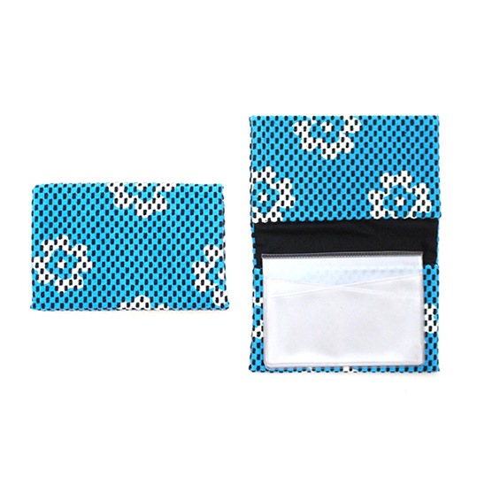 刺子織カードケース クローバー/水色