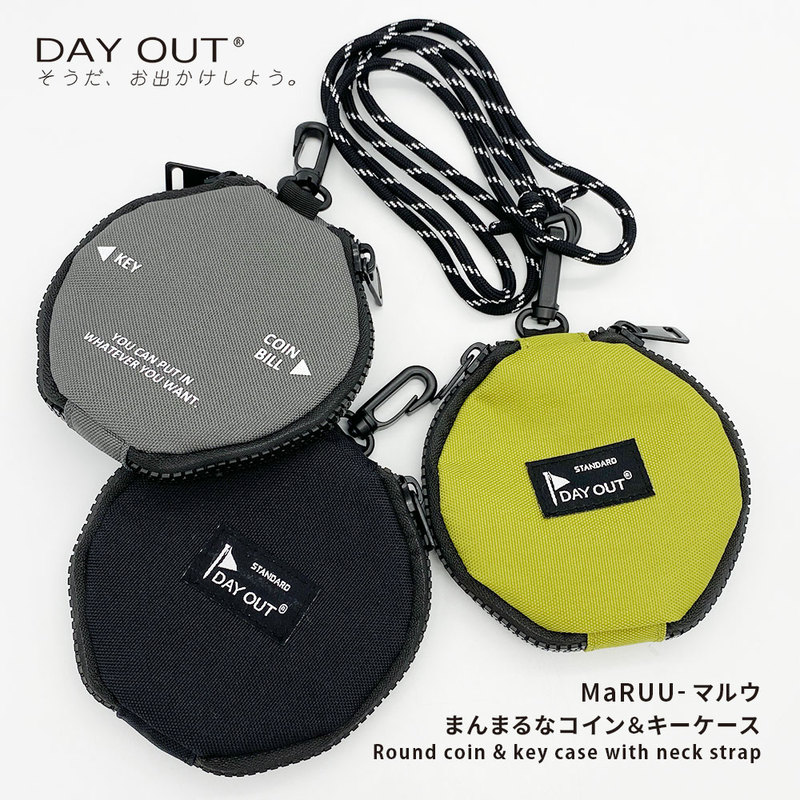 財布 コインケース 小銭入れ キーケース 首掛け 斜めがけ ミニウォレット ポーチ DAY OUT デイアウト 黒 ブラック グレ...