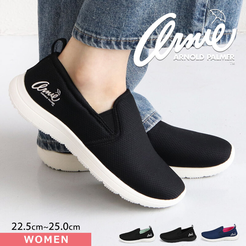 アーニーアーノルドパーマー スリッポン レディース 黒 通学 ジム シューズ スポーツ シンプル Arnie Arnold Pa...