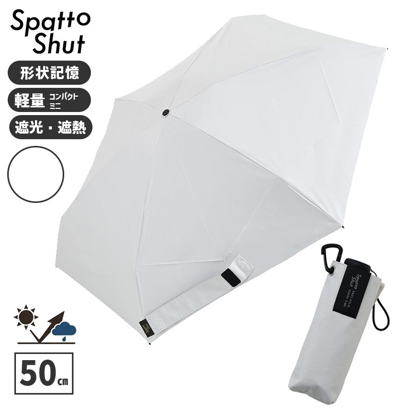 [58118] 形状記憶 折りたたみ傘 SpattoShut コンパクトミニ 50㎝ 168g アッシュホワイト 白 遮光 UVカ...