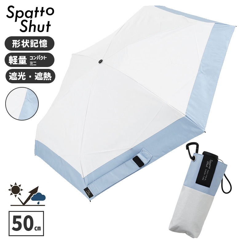 [58123] 形状記憶 折りたたみ傘 SpattoShut コンパクトミニ 50㎝ 168g アッシュホワイトxシャツブルー 遮...
