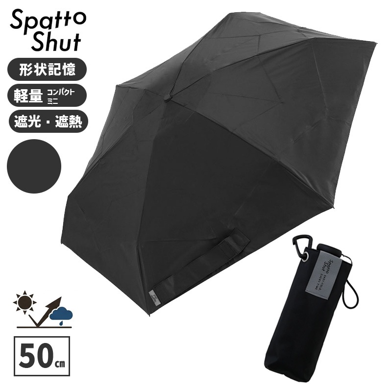 [58121] 形状記憶 折りたたみ傘 SpattoShut コンパクトミニ 50㎝ 168g チャコールグレー 遮光 UVカット...