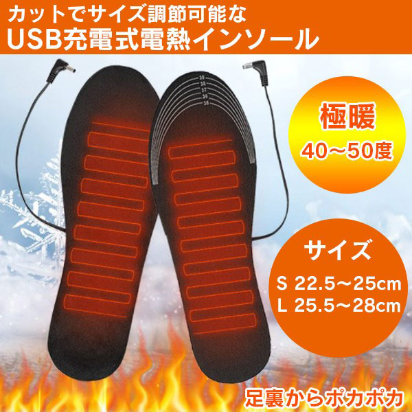 【即納】インソール 電熱インソール USB加熱式 中敷き ソール全面 サイズ調整 防寒対策 電熱防寒具 電熱ウェア 靴底 あったか...