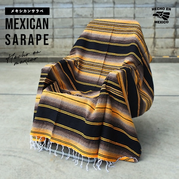 サラペ NO.32 イエロー ブラウン ブラック メキシカン ラグ 大判 厚手 メキシカンラグ MEXICO ブランケット エスニ...