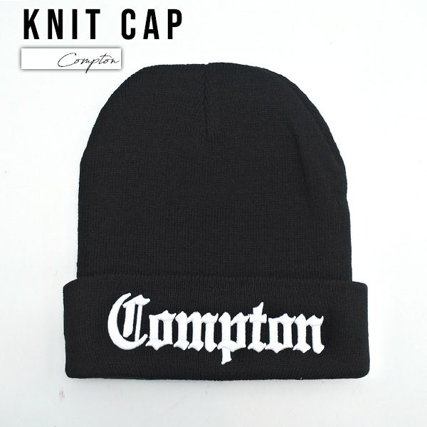 COMPTON ニットキャップ ニット帽 ブラック 黒 ビーニーキャップ 帽子 コンプトン カリフォルニア 折り返し KNIT C...
