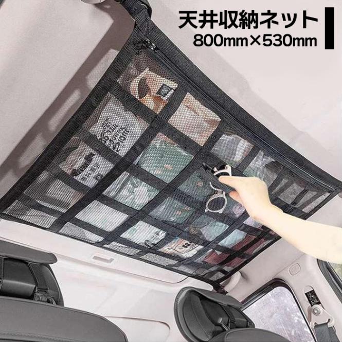 車用 天井収納ネット 800×530mm 2層 ファスナー付き ルーフネット カーゴネット キャンプ 車中泊 ミニバン SUV ハ...