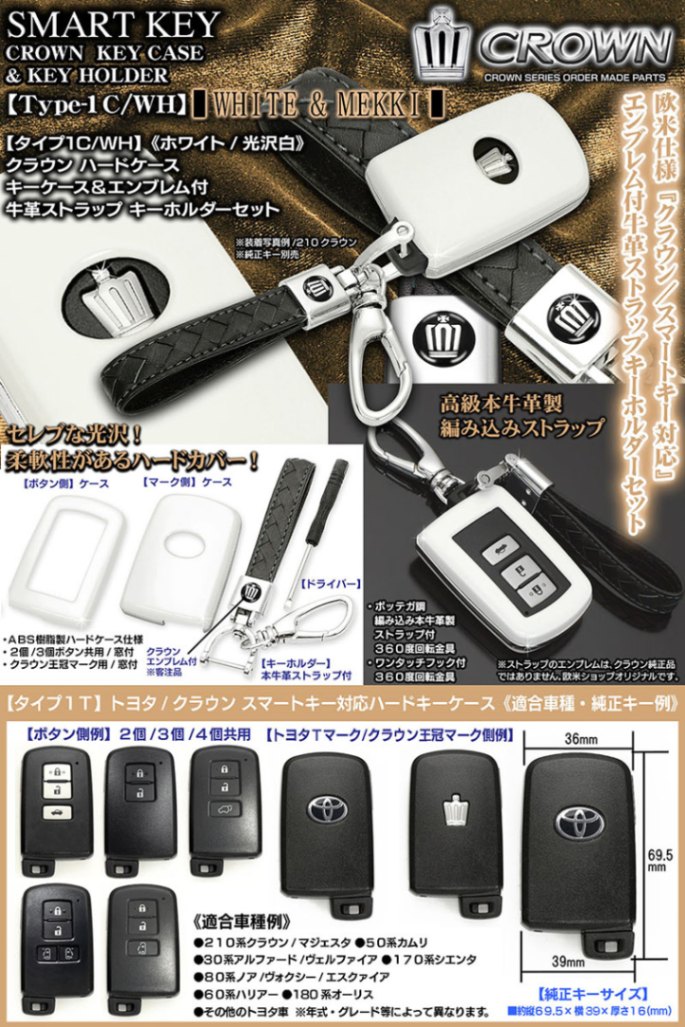 タイプ1C/WH【210系クラウン/ハイブリット】ホワイト/光沢白/ハードケース キーケース&王冠エンブレム付牛革ストラップ キー...