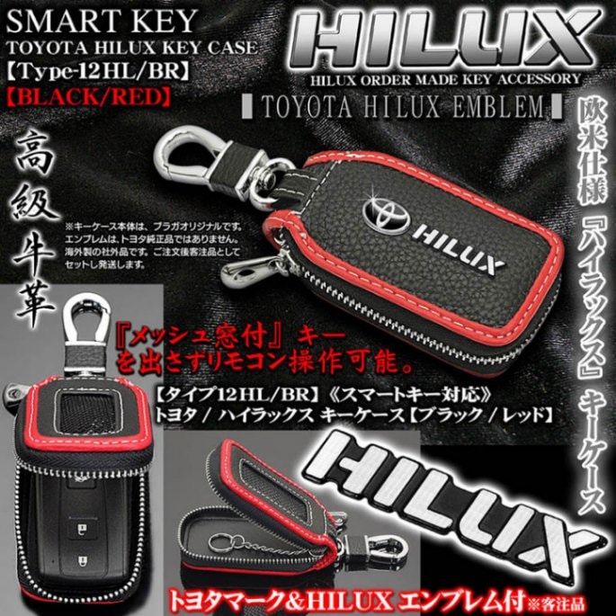 10~170系ハイラックス【タイプ12HL/BR】トヨタ/ハイラックス キーケース/牛革製[ブラック/レッド]エンブレム付/窓付/...