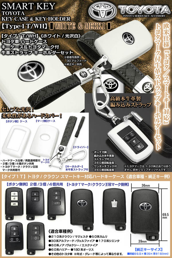 タイプ1T/WH[210クラウン/マジェスタ]トヨタ ホワイト/光沢白 ハードケース キーケース&トヨタマーク付牛革ストラップ キ...