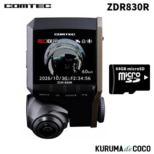 コムテック ドライブレコーダー ZDR830R 360°カメラ 前方左右車内の広範囲を記録 340万画素高画質
