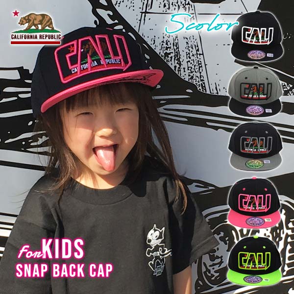 キッズ キャップ #16 カリフォルニア ロゴ 刺繍 全2色 スナップバック 抜き文字 キラキラシール 子供用 男の子 女の子 帽...
